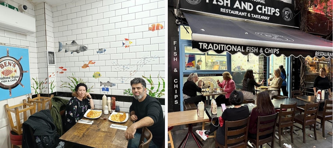 Best Fish & Chips in London. Delicious, fast, with service and hospitality that feel very high-end. They source their fish fresh every morning from Billingsgate Market and hand-cut the chips on site. Fun fact: no one really knows who “Ben” is - it adds to the charm of the place!